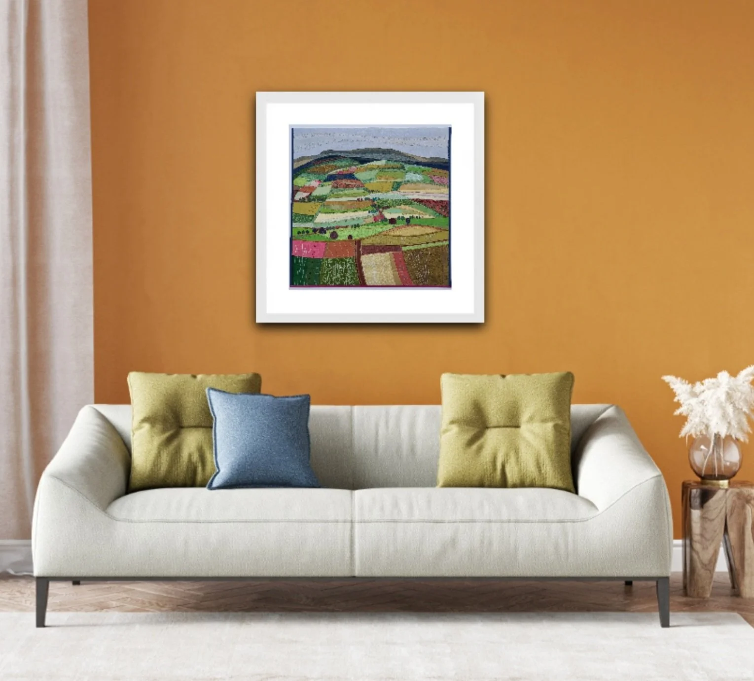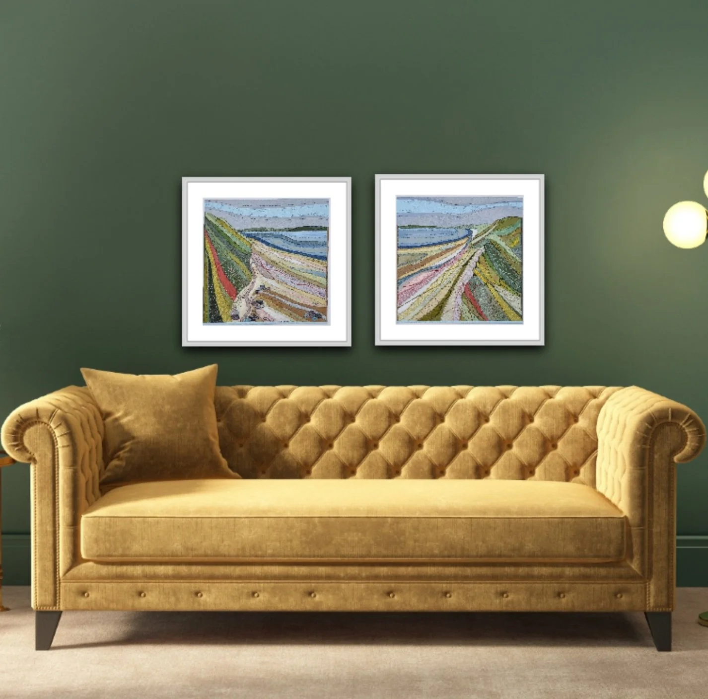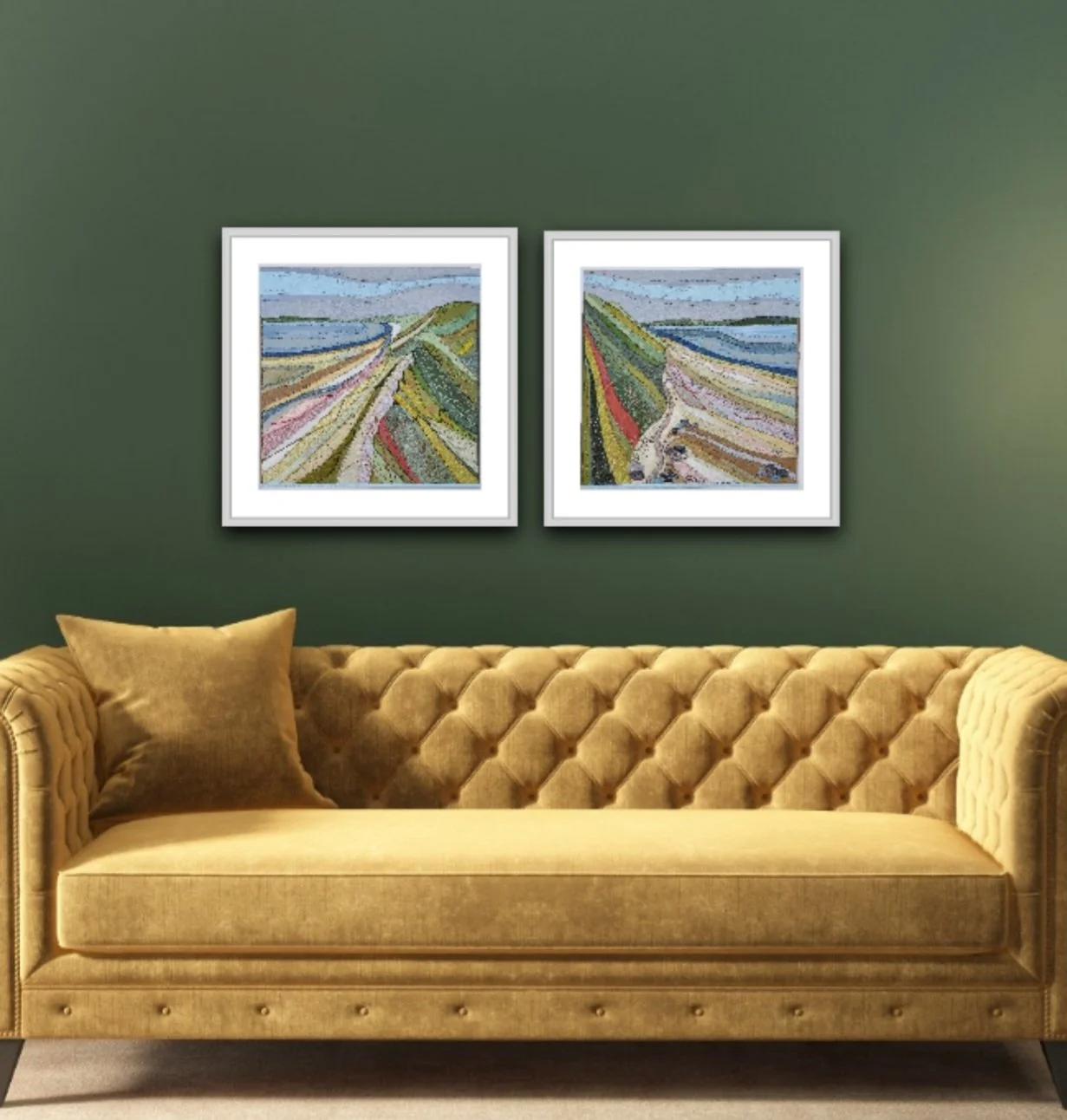 All the artwork shown in situ, in the rooms, is done by a digital app, therefore again there will be slight differences in real life.